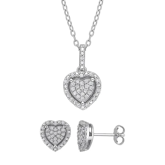 2-Piece Sterling Silver & 0.4 CT. T.W. Diamond Heart Stud Earrings & Pendant Necklace Set