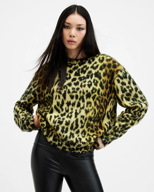 AllSaints Lex Oversized Leopard Print Jumper,, Size:
