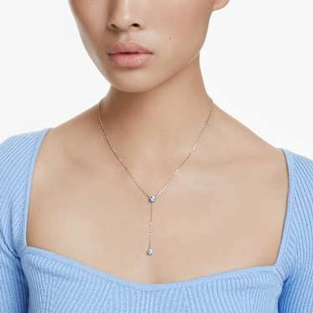 Attract Y necklace, Round cut, Blue, Rhodium plated by SWAROVSKI