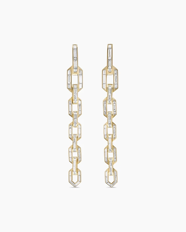 DY Mercer® Linked Drop Earrings in Sterling Silver with 18K Yellow Gold and Diamonds, 68mm