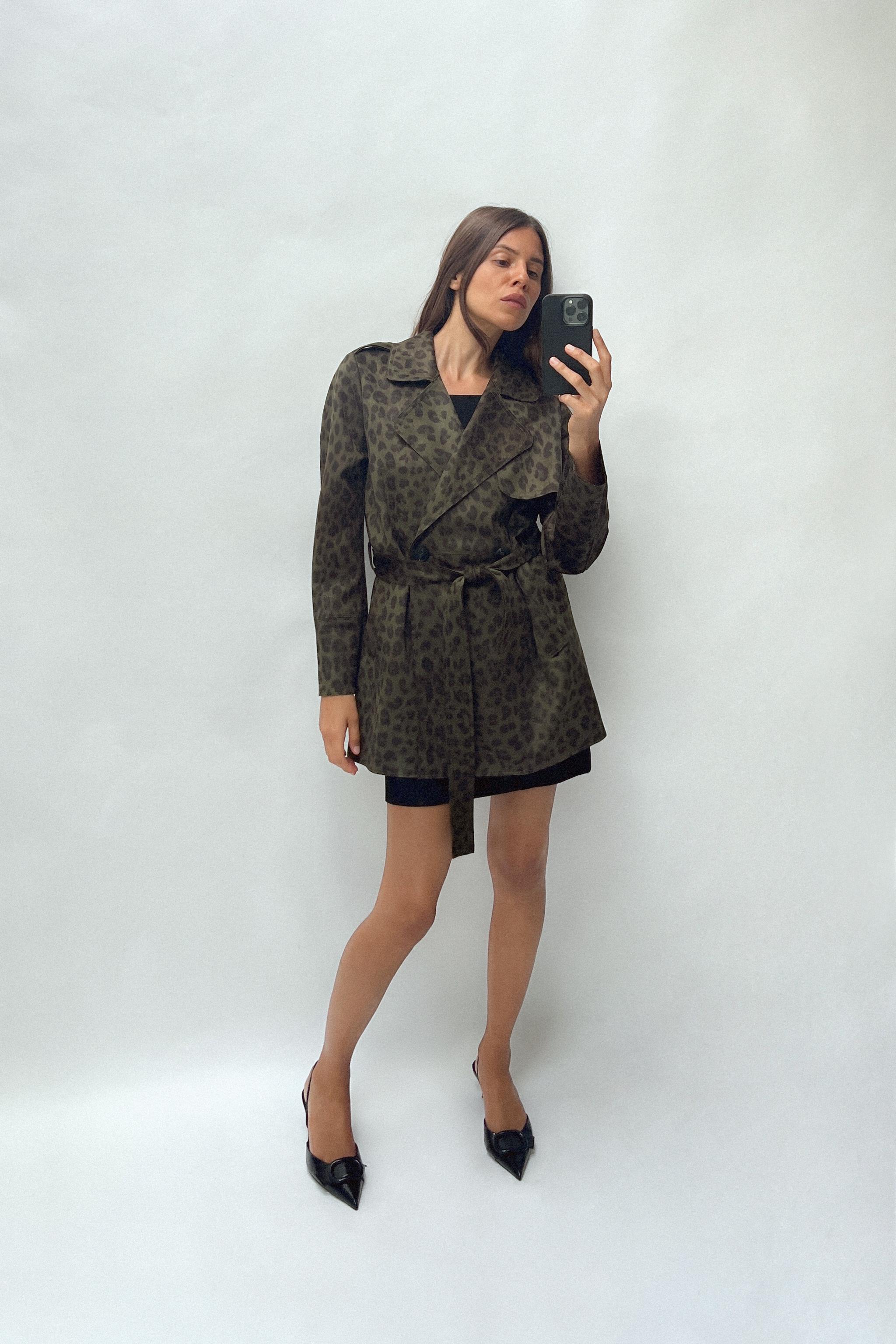FAUX SUEDE ANIMAL PRINT CROPPED TRENCH
