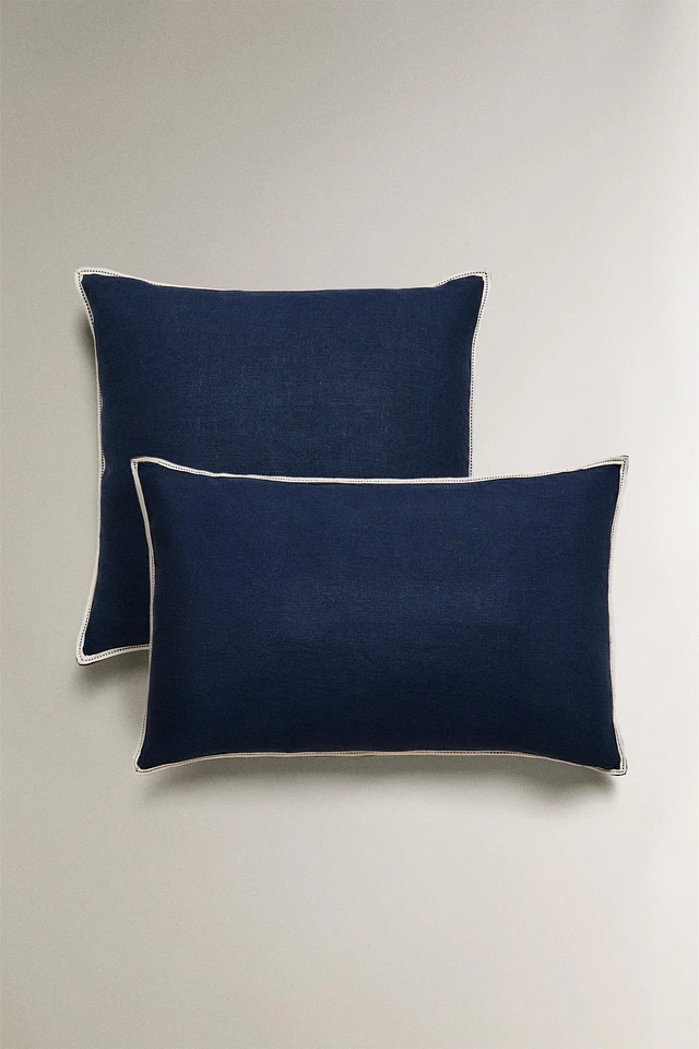 LINEN THROW PILLOW COVER WITH BACKSTITCHING