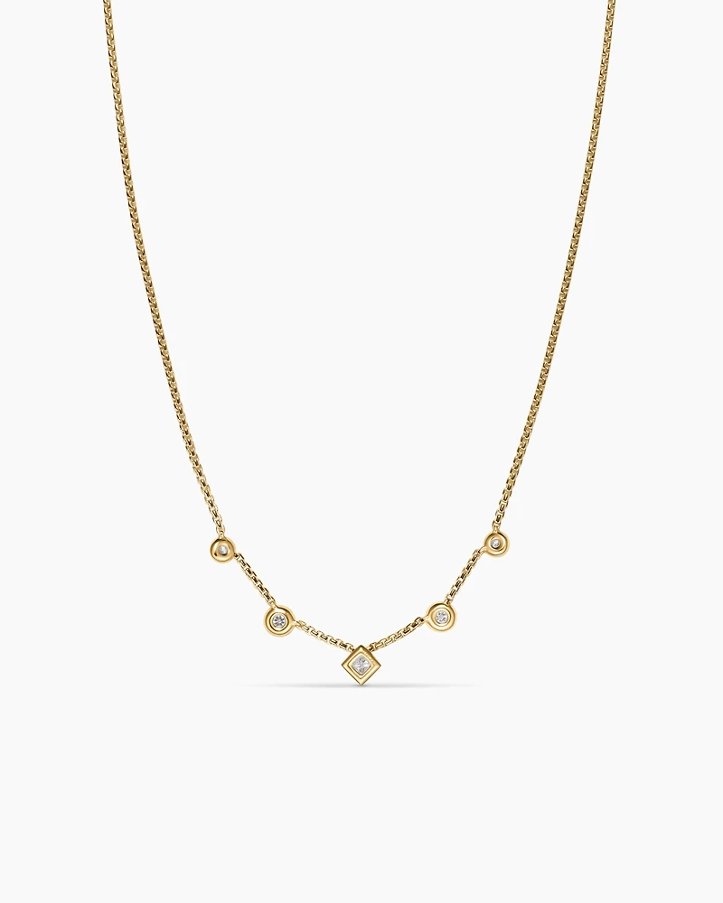 Petite Modern Renaissance® Station Chain Necklace in 18K Yellow Gold with Diamonds, 3.4mm