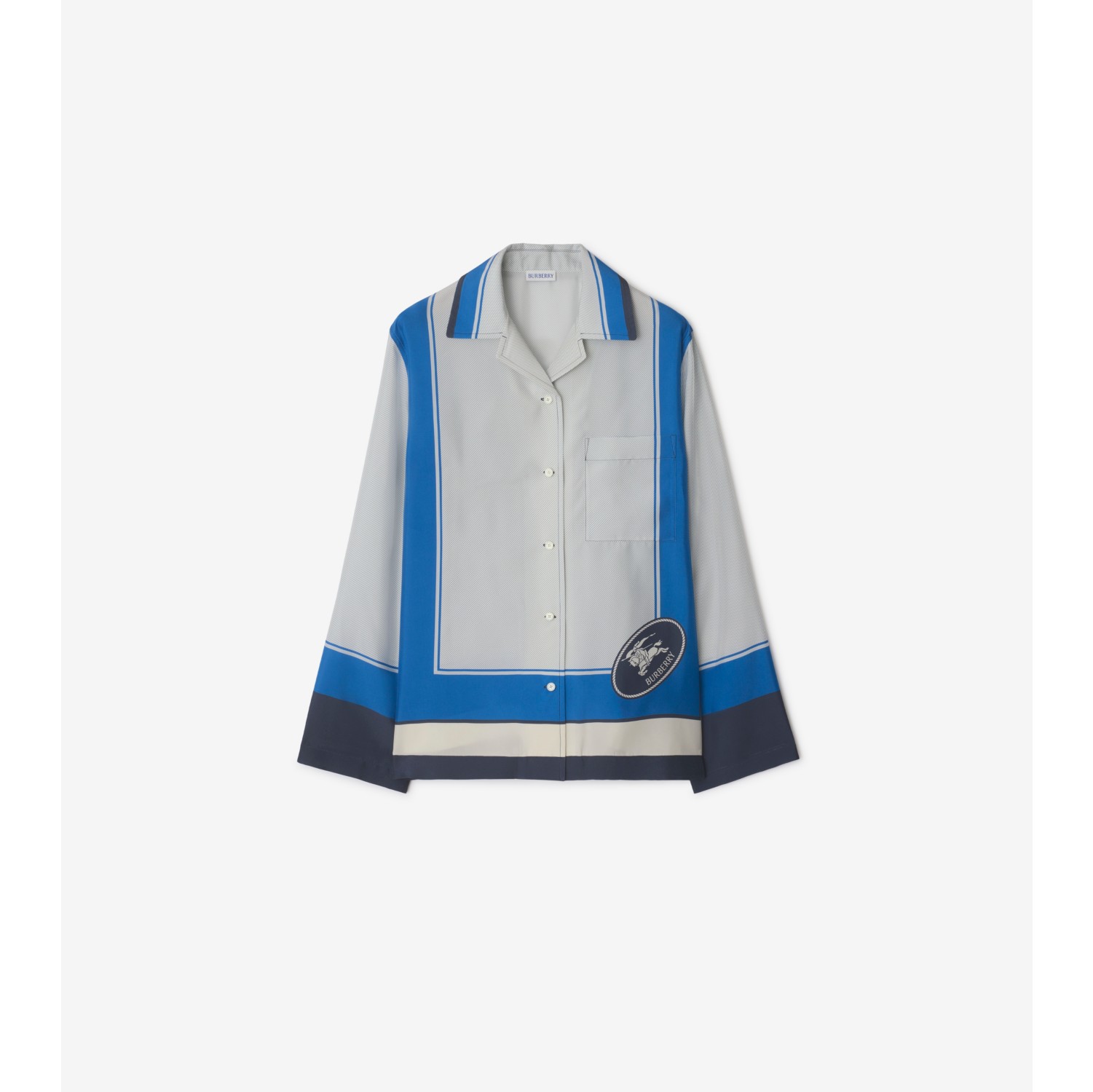 Regular Fit Knight Stamp Box Silk Pyjama Shirt in Ink - Women | Burberry® Official