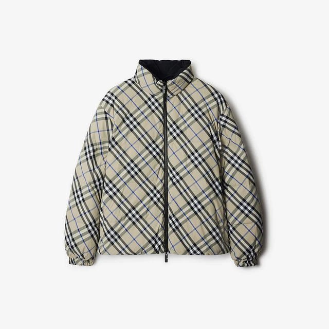 Reversible Check Nylon Puffer Jacket in Sand | Burberry® Official