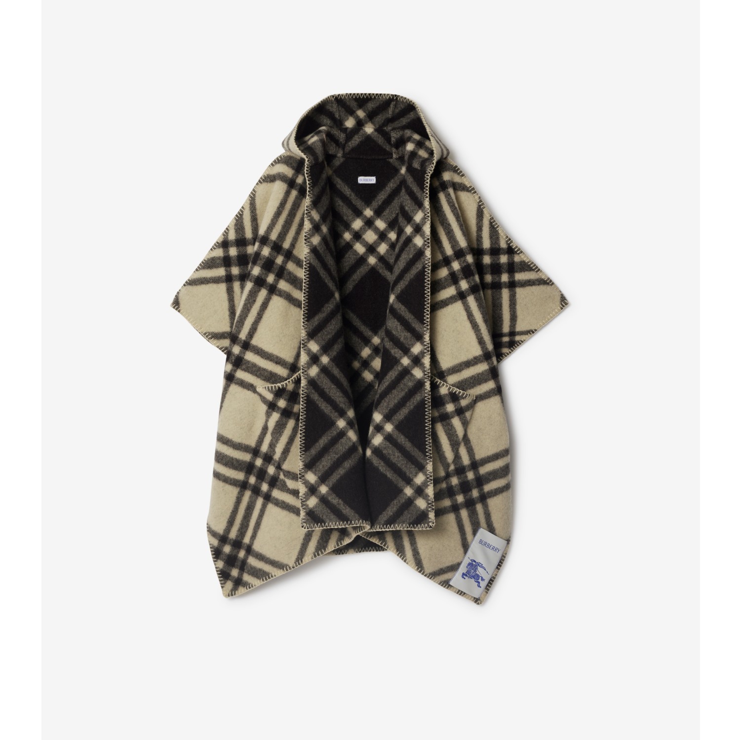 Reversible Check Wool Cape in Candle | Burberry® Official